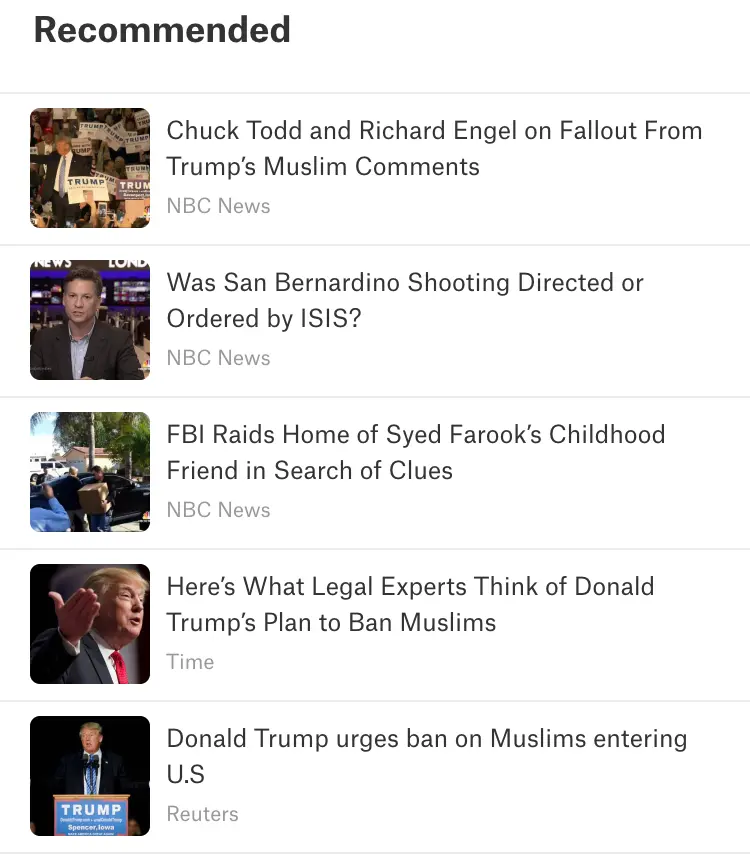 I like to think of the Recommended widget as a jumping off point for further exploration. Headlines 1-3 go deeper into the past with a specific source while headlines 4 & 5 go broader along the same topic but across different publications. Choose your adventure.