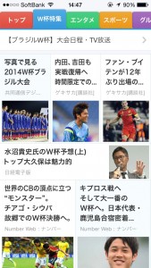 なお、W杯特集チャンネルでは新たな試みとして、株式会社共同通信デジタルの協力のもと、W杯の興奮を克明に伝えるべく豊富な写真を数多く閲覧できるフォトストリーム(1記事内に多数の写真を連続的に表示)を配信します。フォトストリームは、ユーザーに新たなニュース体験をもたらすものです。
